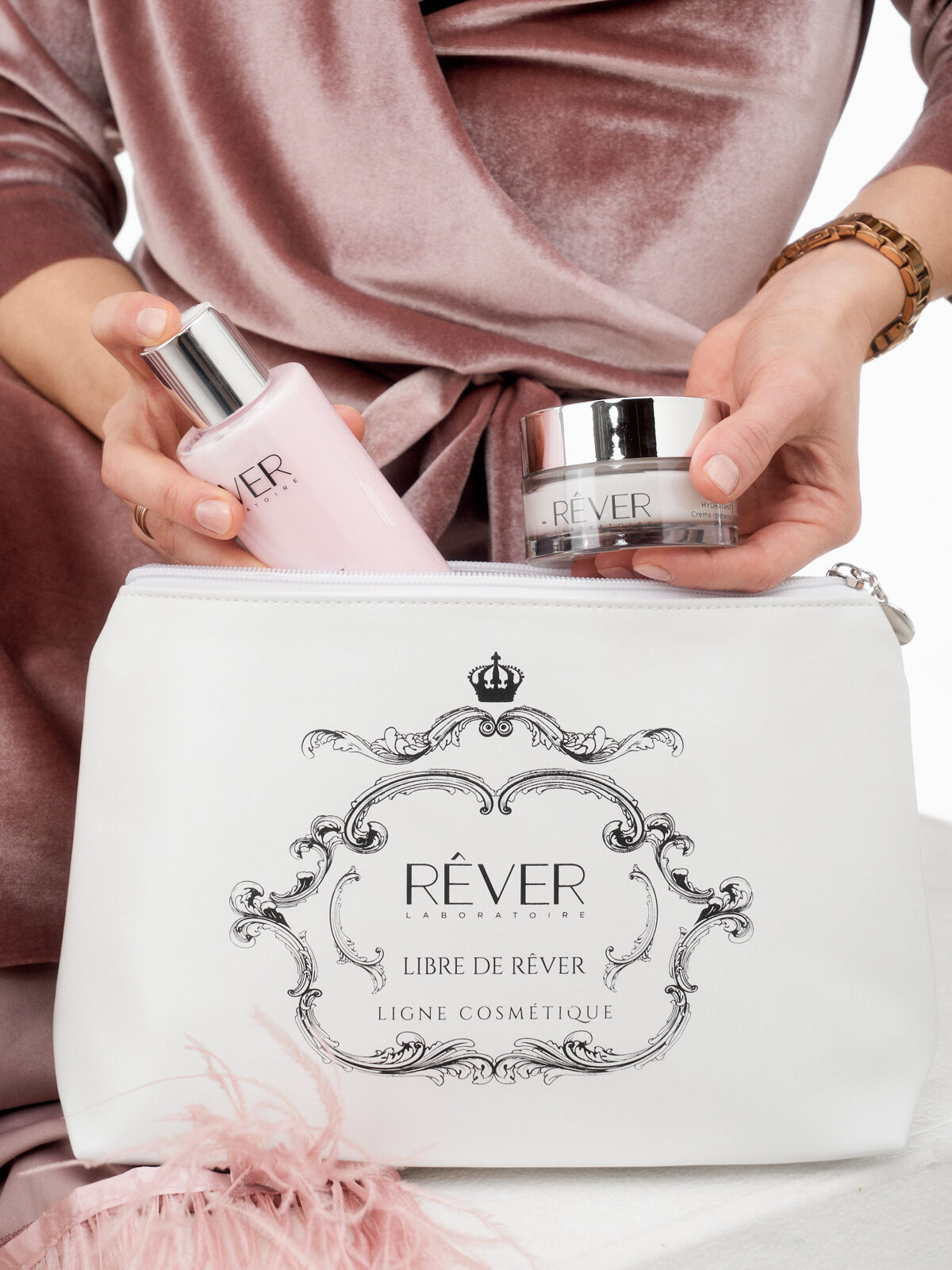 Утренний и вечерний ритуал ухода за лицом нужно начинать с очищения. В качестве первого продукта я предлагаю выбрать очищающее средство линии “REVER 0.1 Молочко для мягкого очищения”. В составе молочка — гиалуроновая кислота, натуральные смягчающие масла, витамин PP (ниацинамид) и экстракт ромашки. Этот продукт не только увлажнит и успокоит кожу, но и поможет восстановить защитный барьер кожи. Молочко наносится на лицо легкими массажными движениями и смывается теплой водой. Хочу добавить, что очищающие средства не нужно агрессивно тереть по коже, так как слишком частое и агрессивное мытье и очищение могут повредить ее естественный барьер.